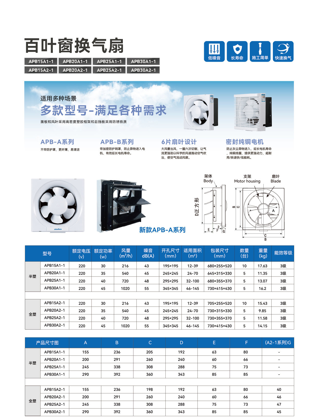 百叶换气扇(不带网罩)APB(A1-1)半塑 | APB(A2-1)全塑